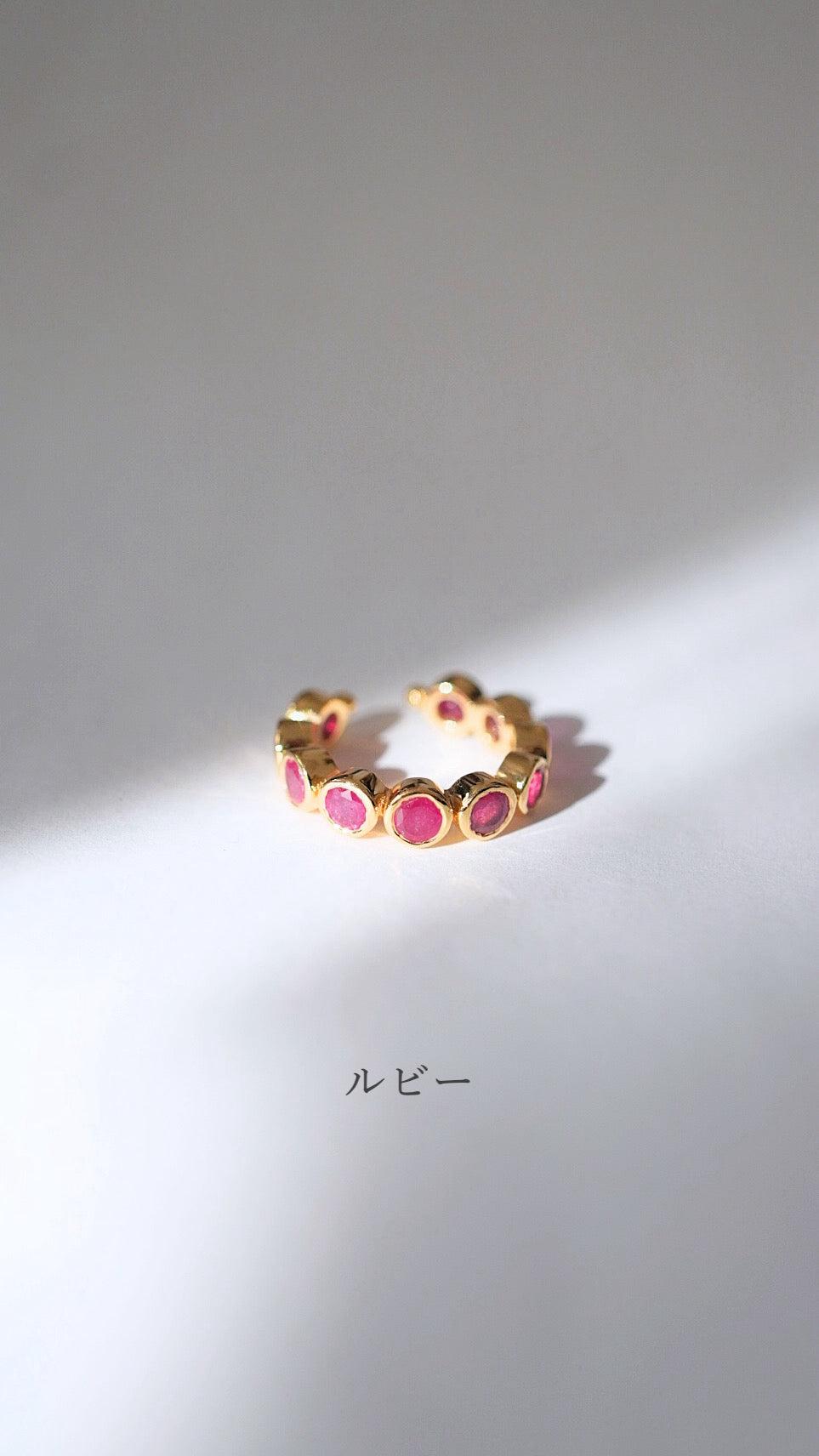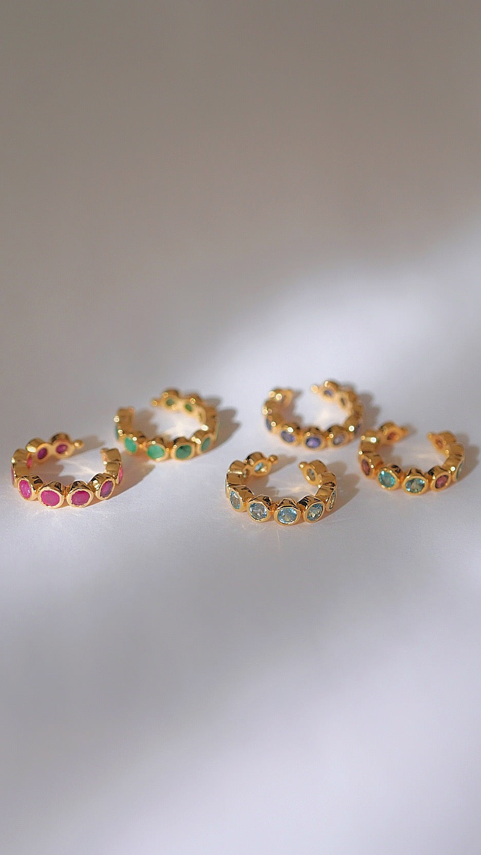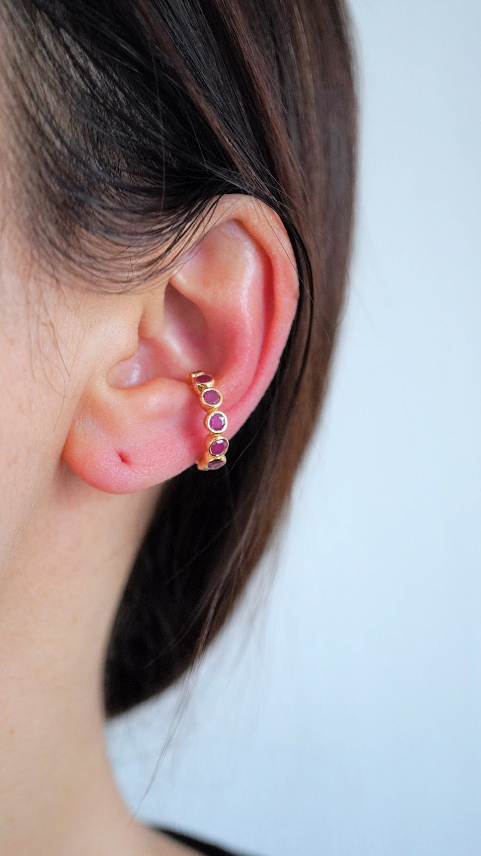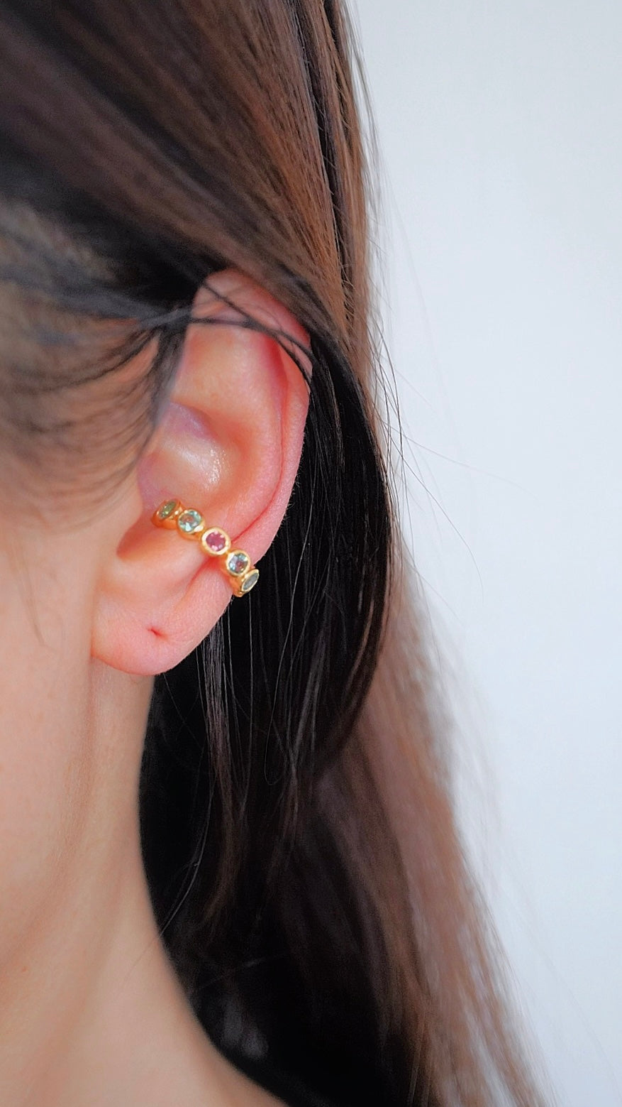Ear cuff ruby, emerald, blue topaz, tourmaline, iolite