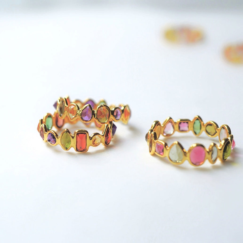 Hiromi.Aで1番人気のエタニティリング。お好みのお色味で石を並べます。着用する向きによって表情を変えることができるのがポイントです。 -