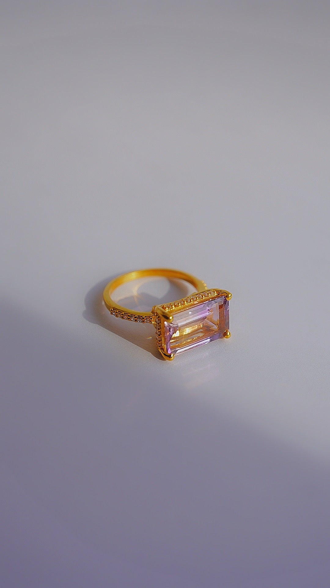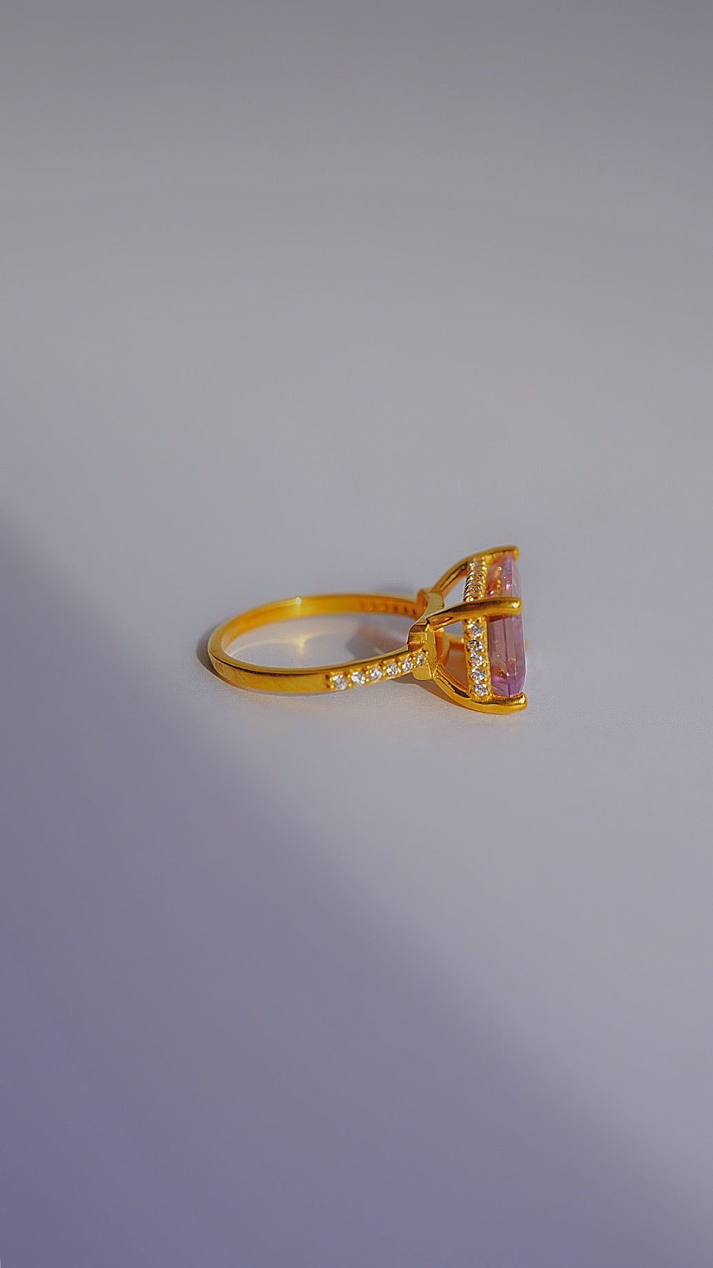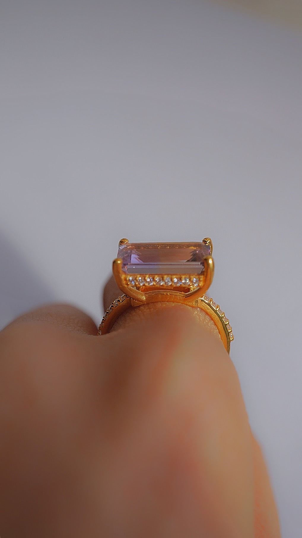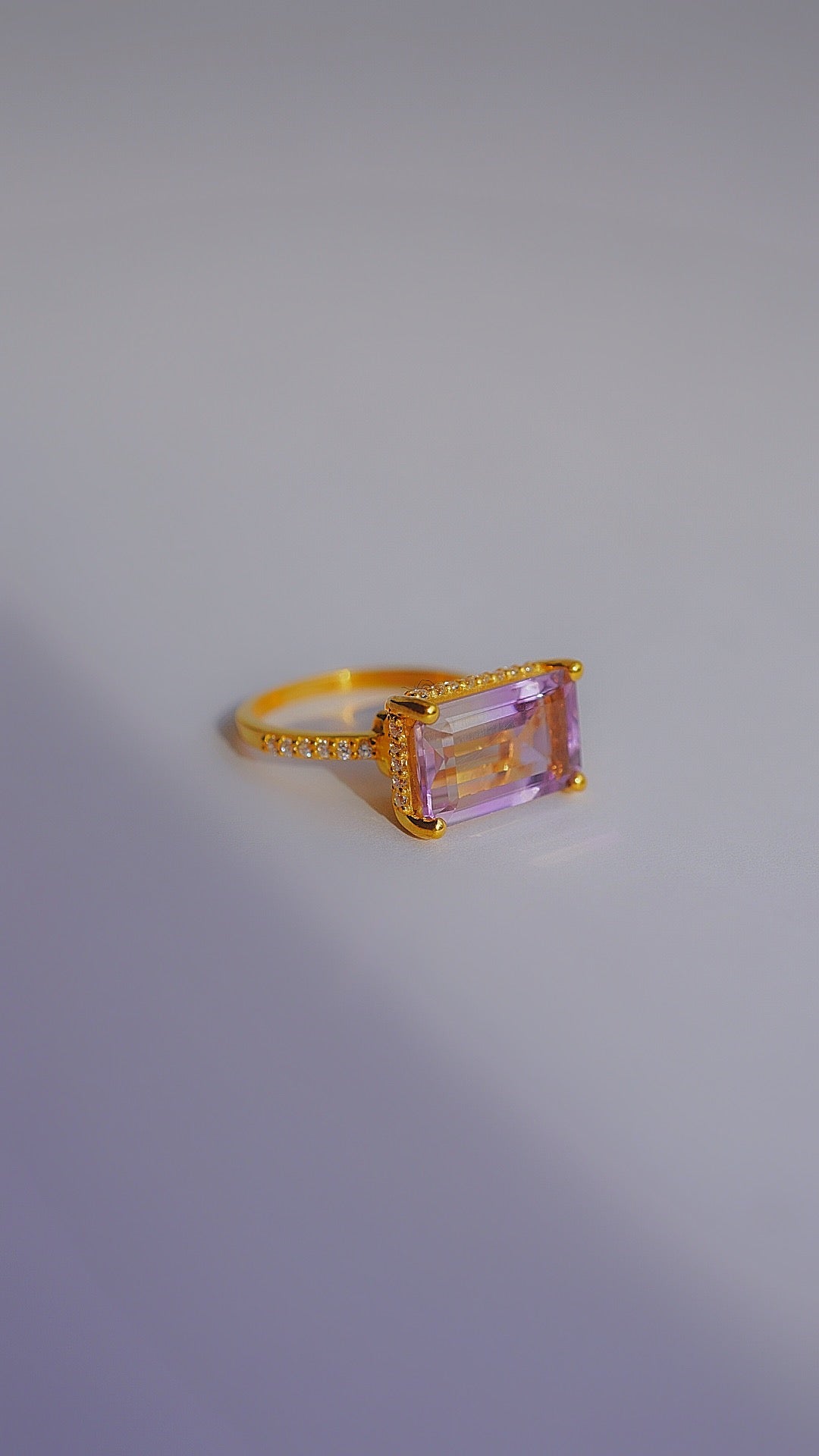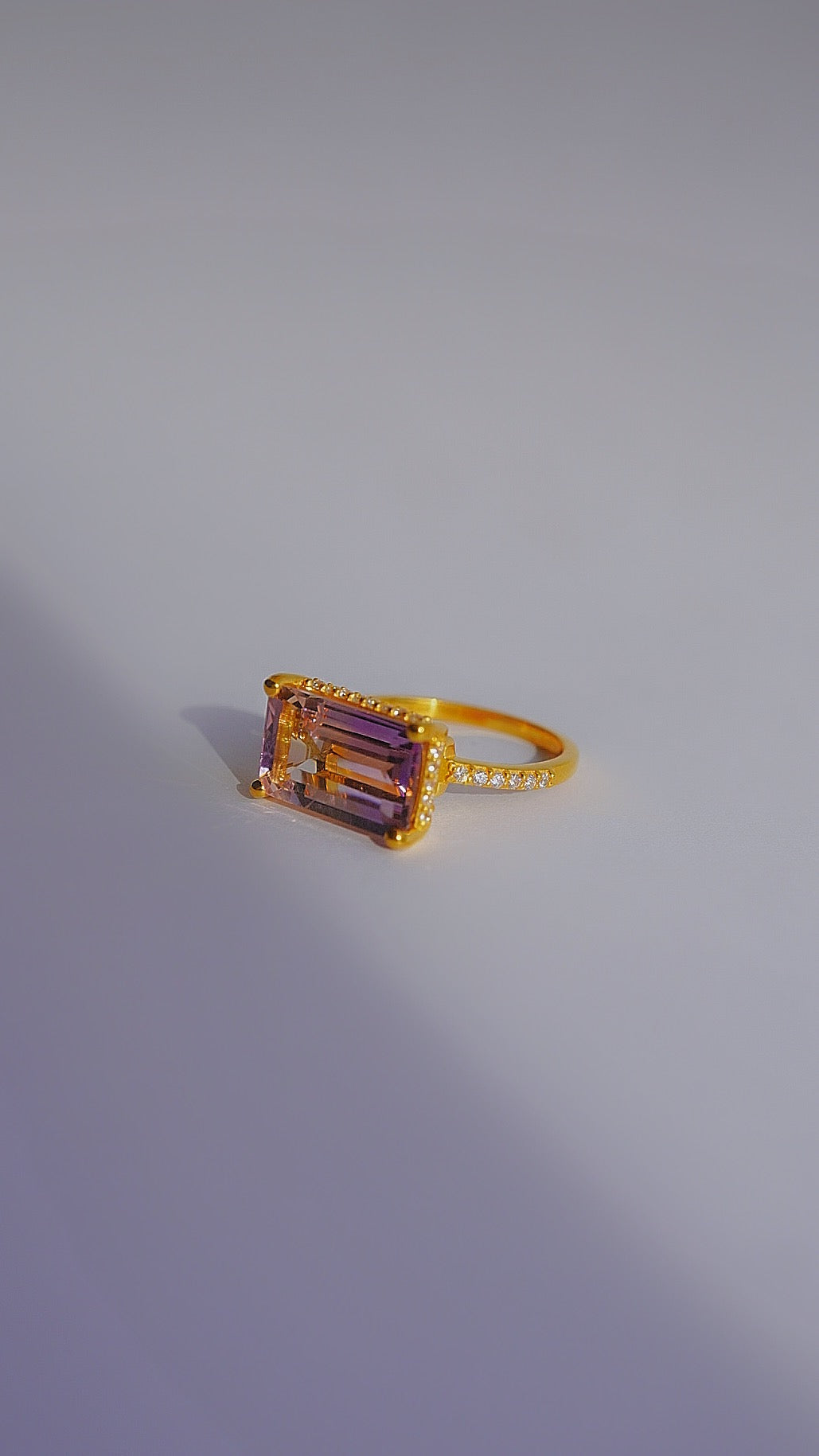 アメシストのパープルとシトリンのハチミツカラーを兼ね備えた美しい天然石のリングです。