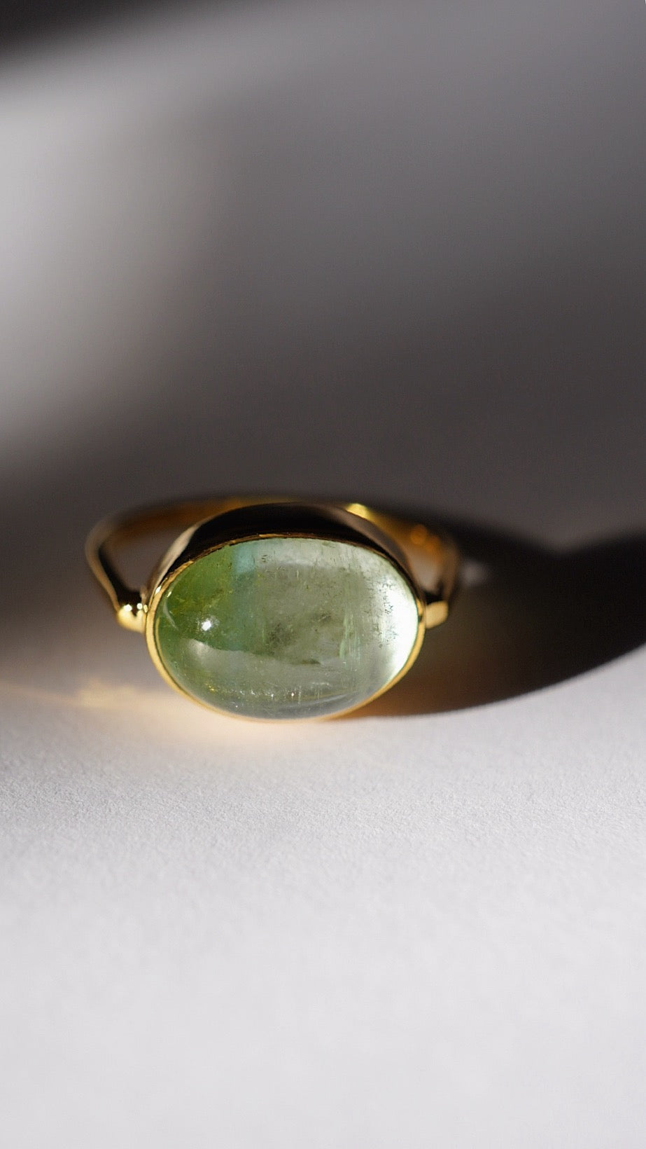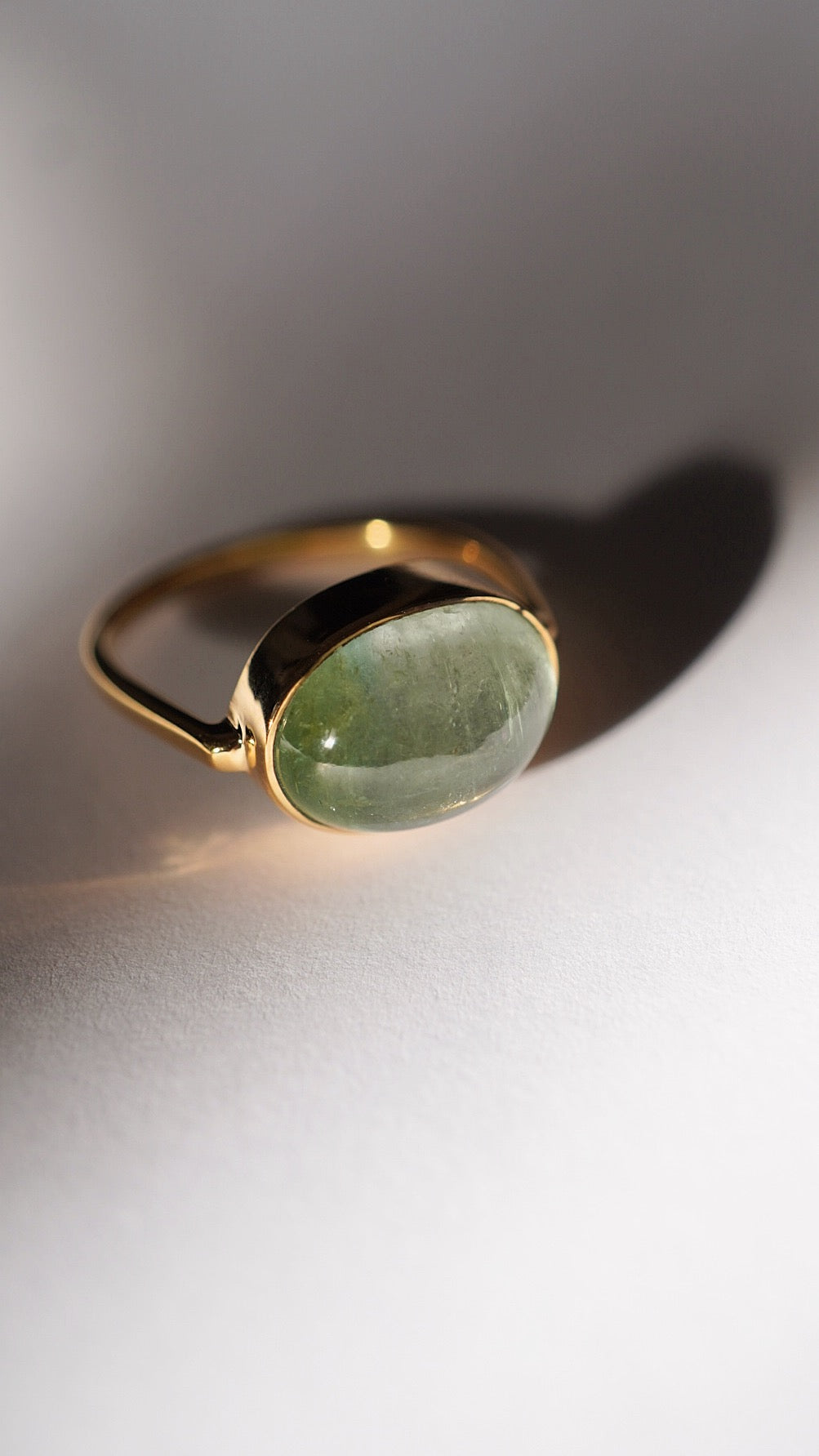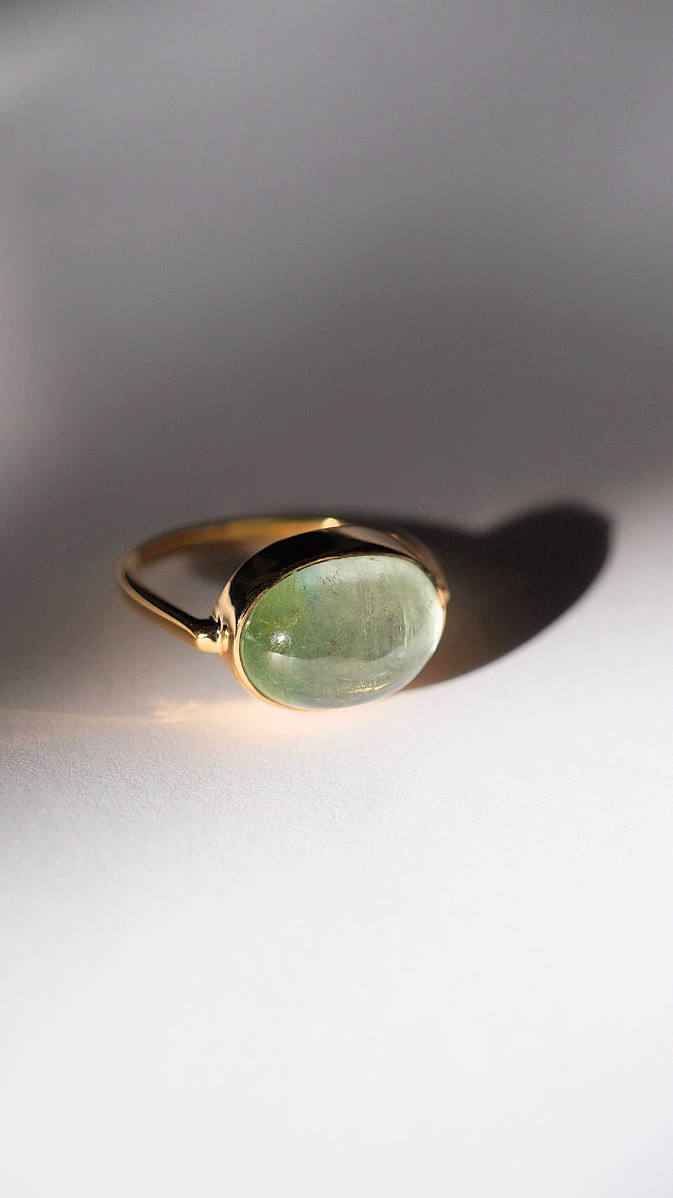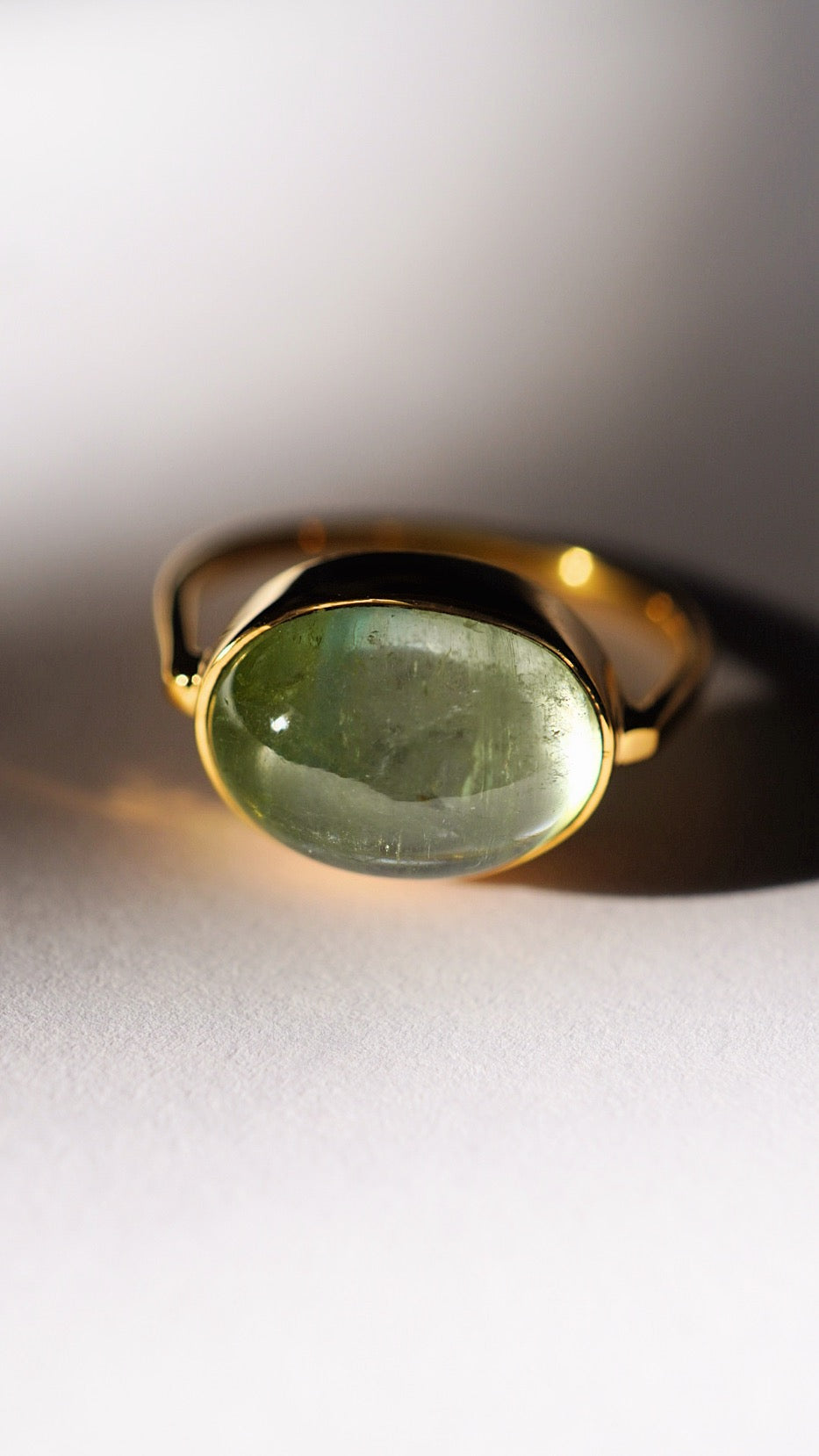 グリーンの濃淡バイカラーのトルマリンがとても贅沢で引き込まれるような美しさのリングです。
