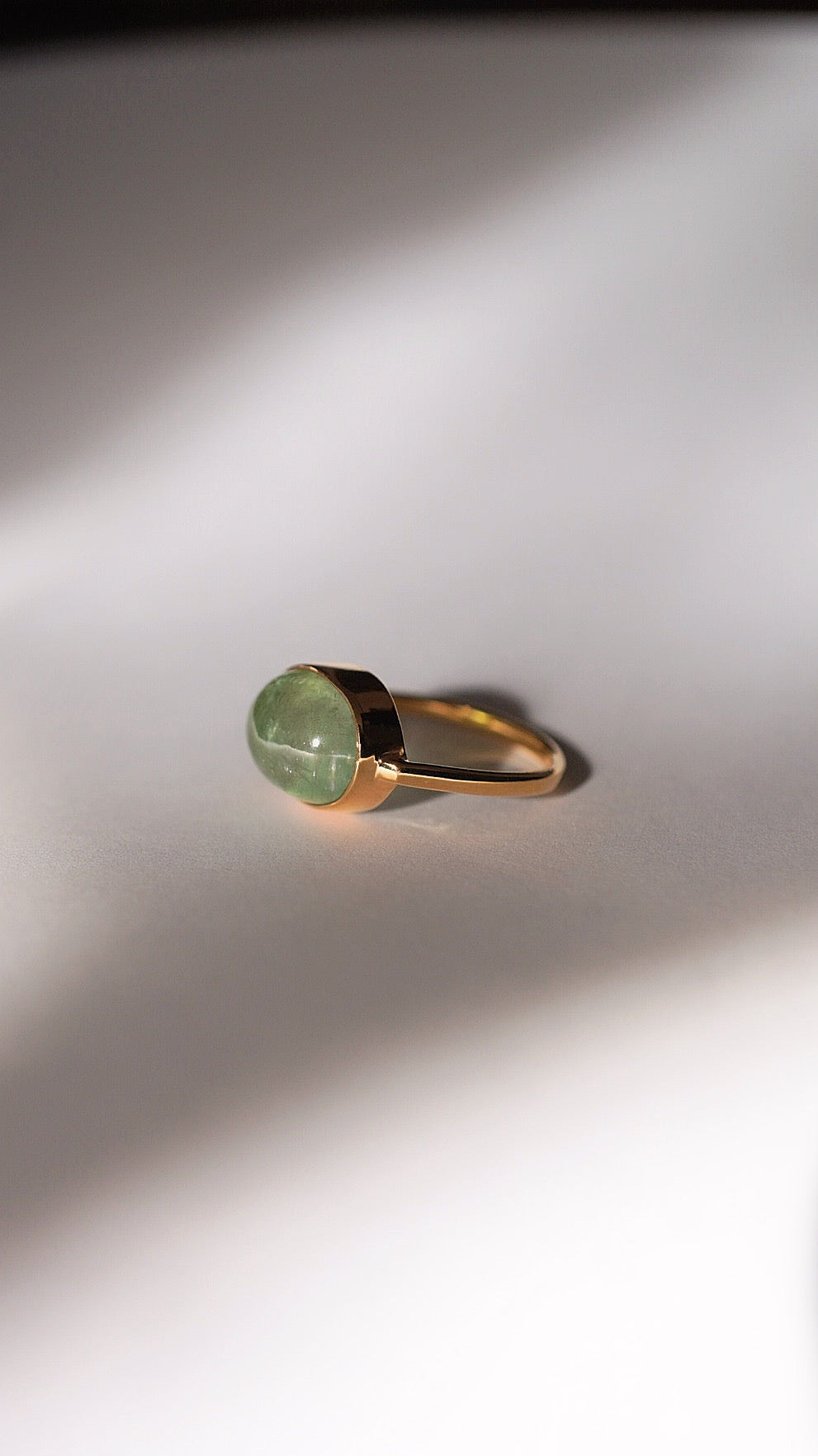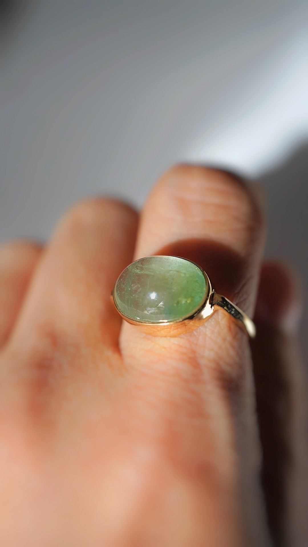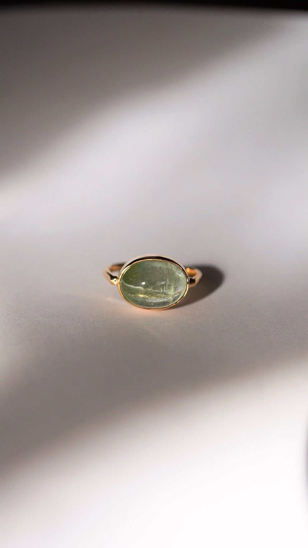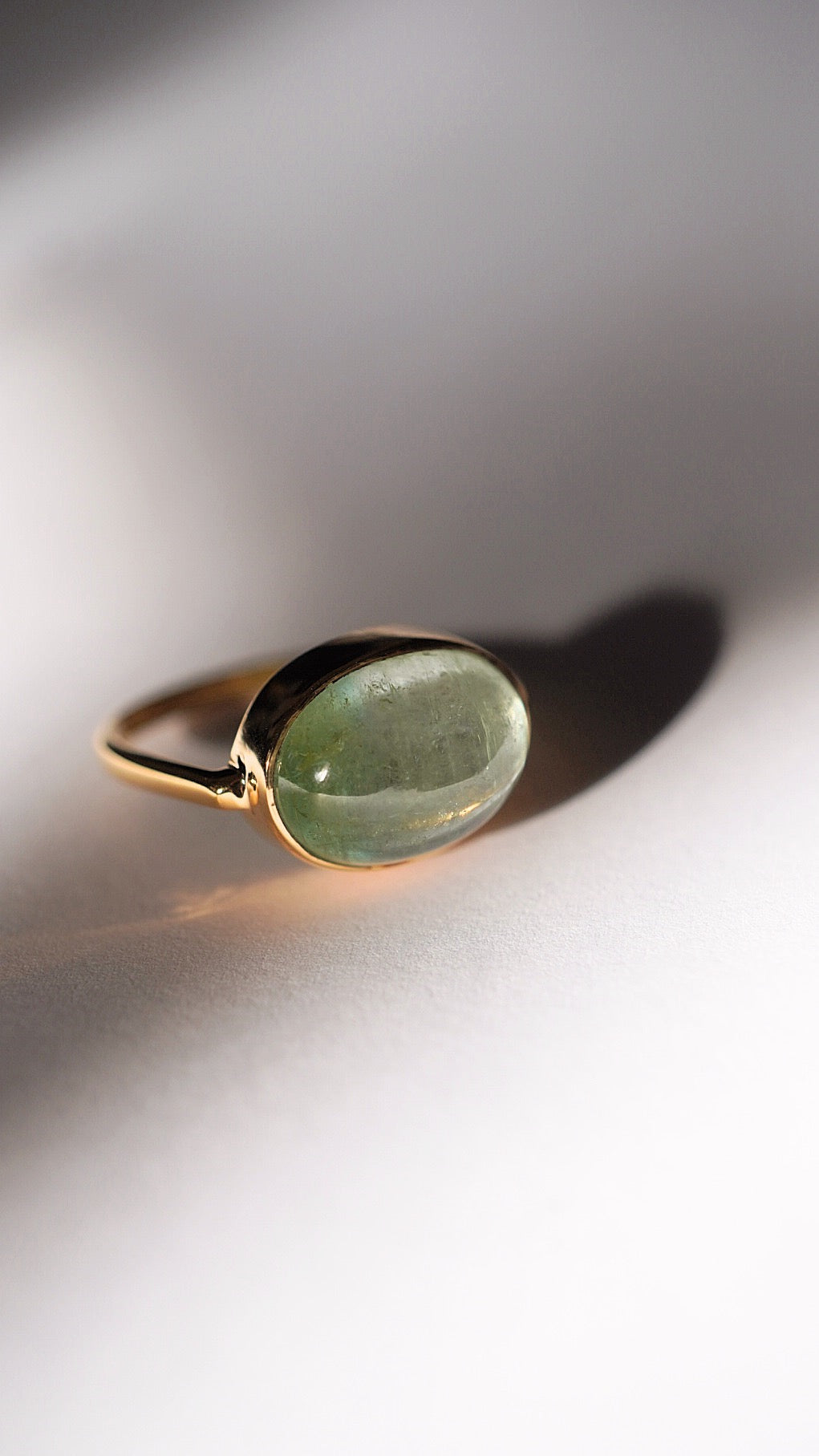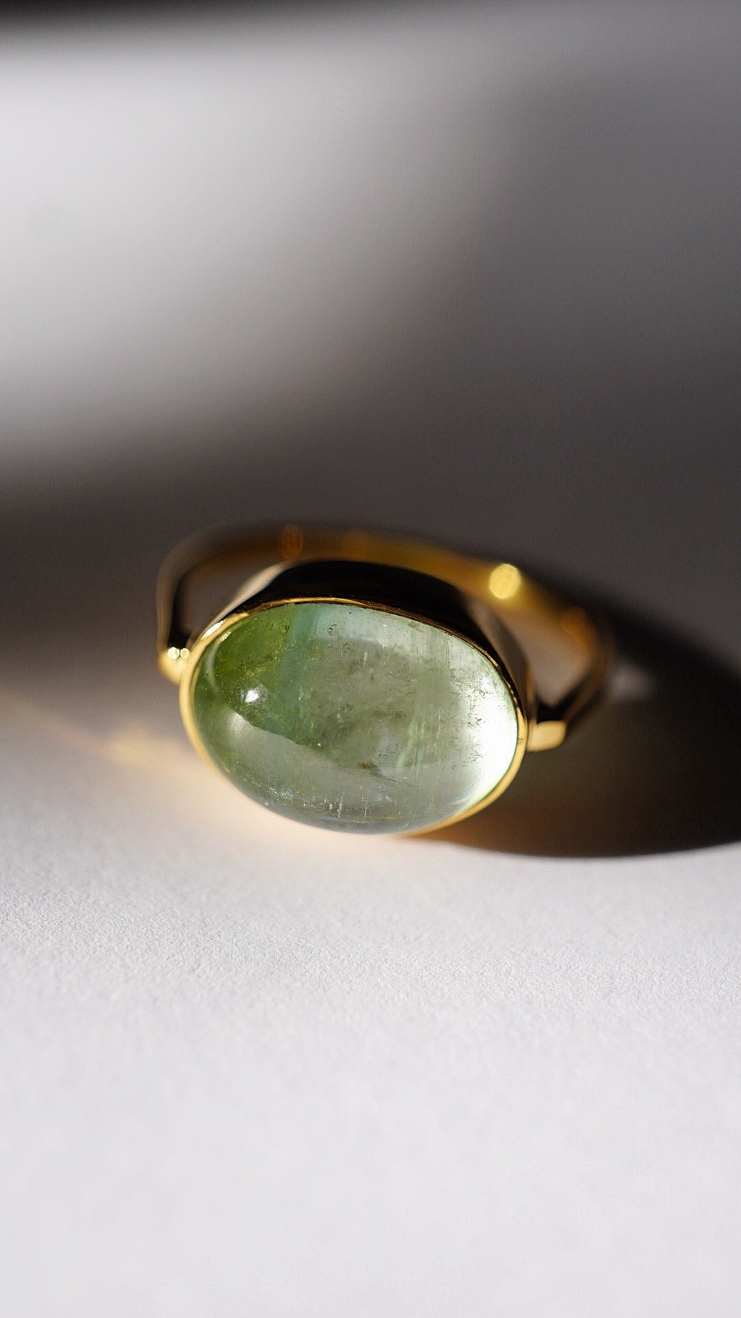 グリーンの濃淡バイカラーのトルマリンがとても贅沢で引き込まれるような美しさのリングです。