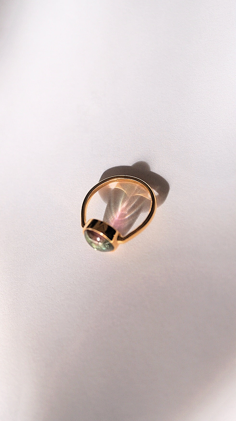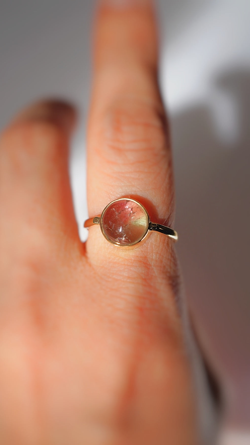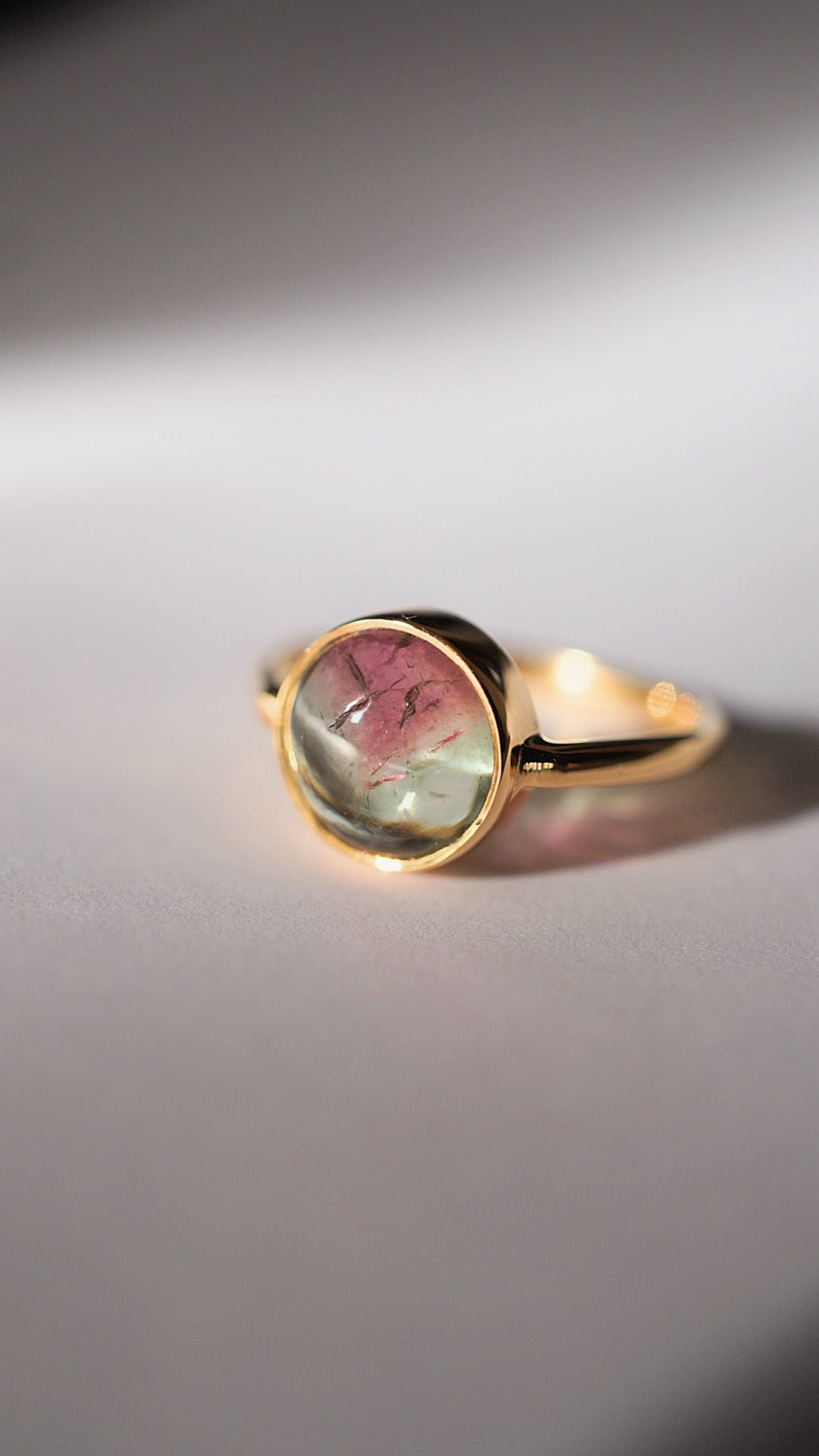 ピンクとグリーンのバイカラーのトルマリンがとても贅沢で引き込まれるような美しさのリングです。