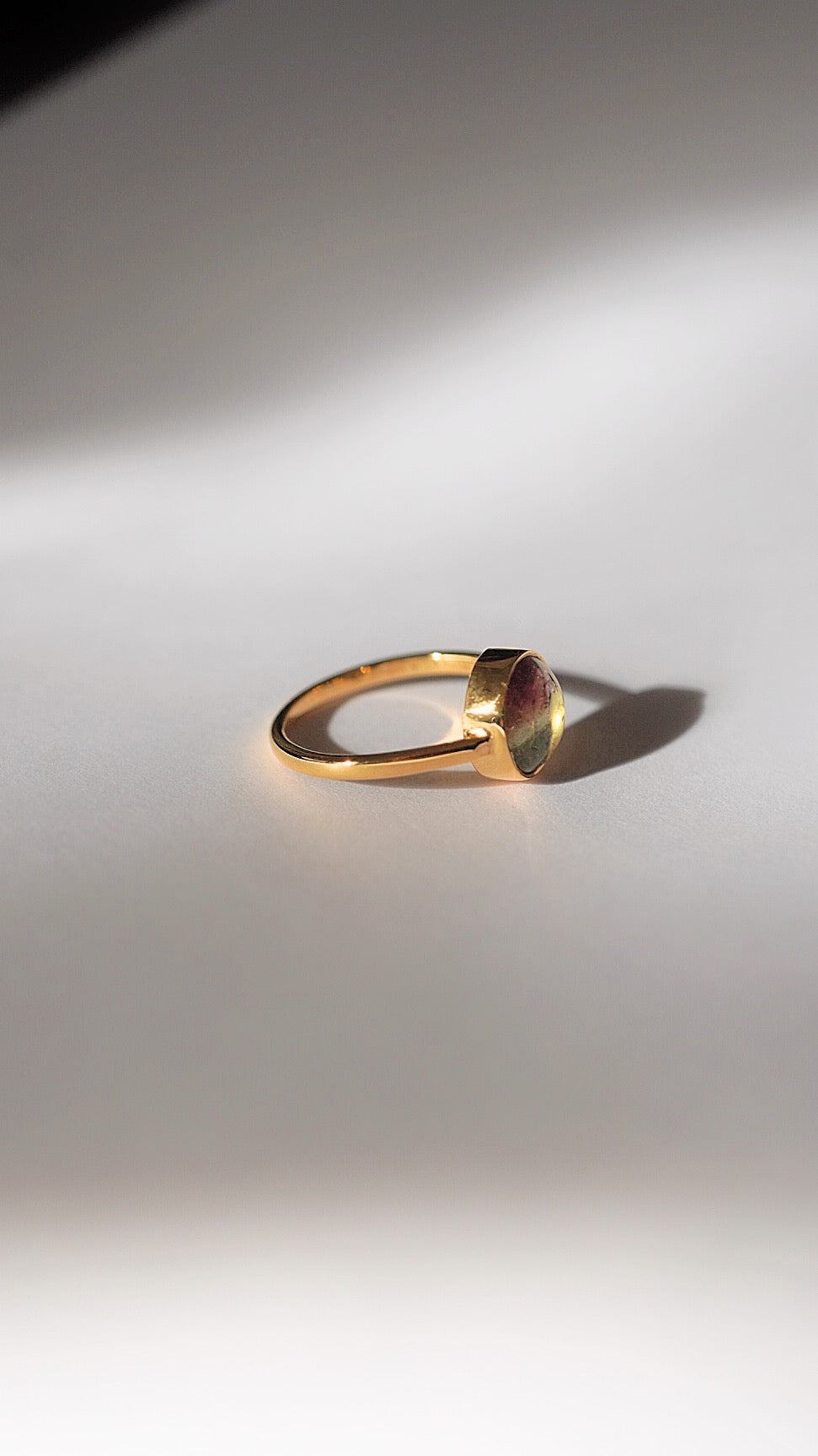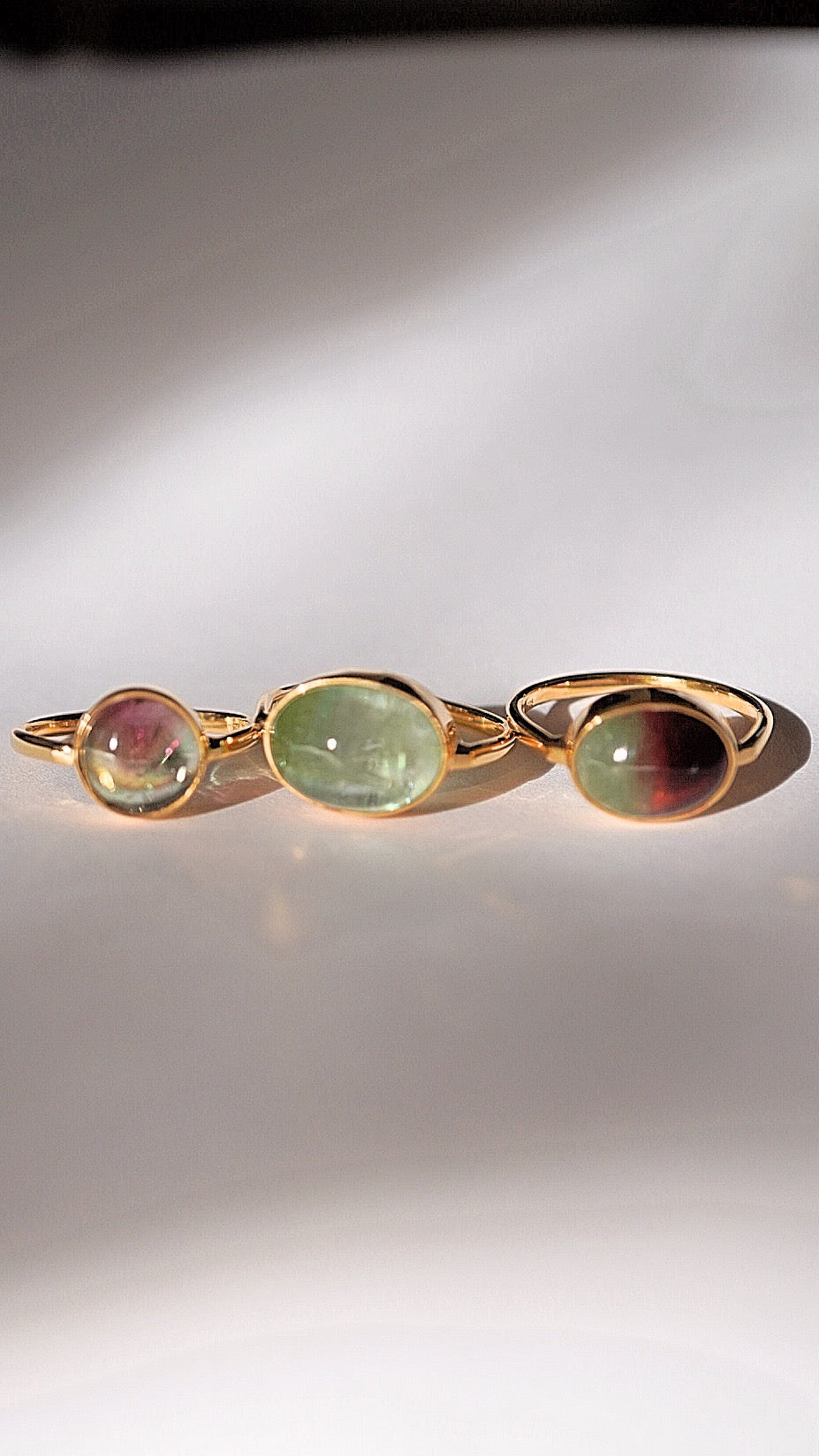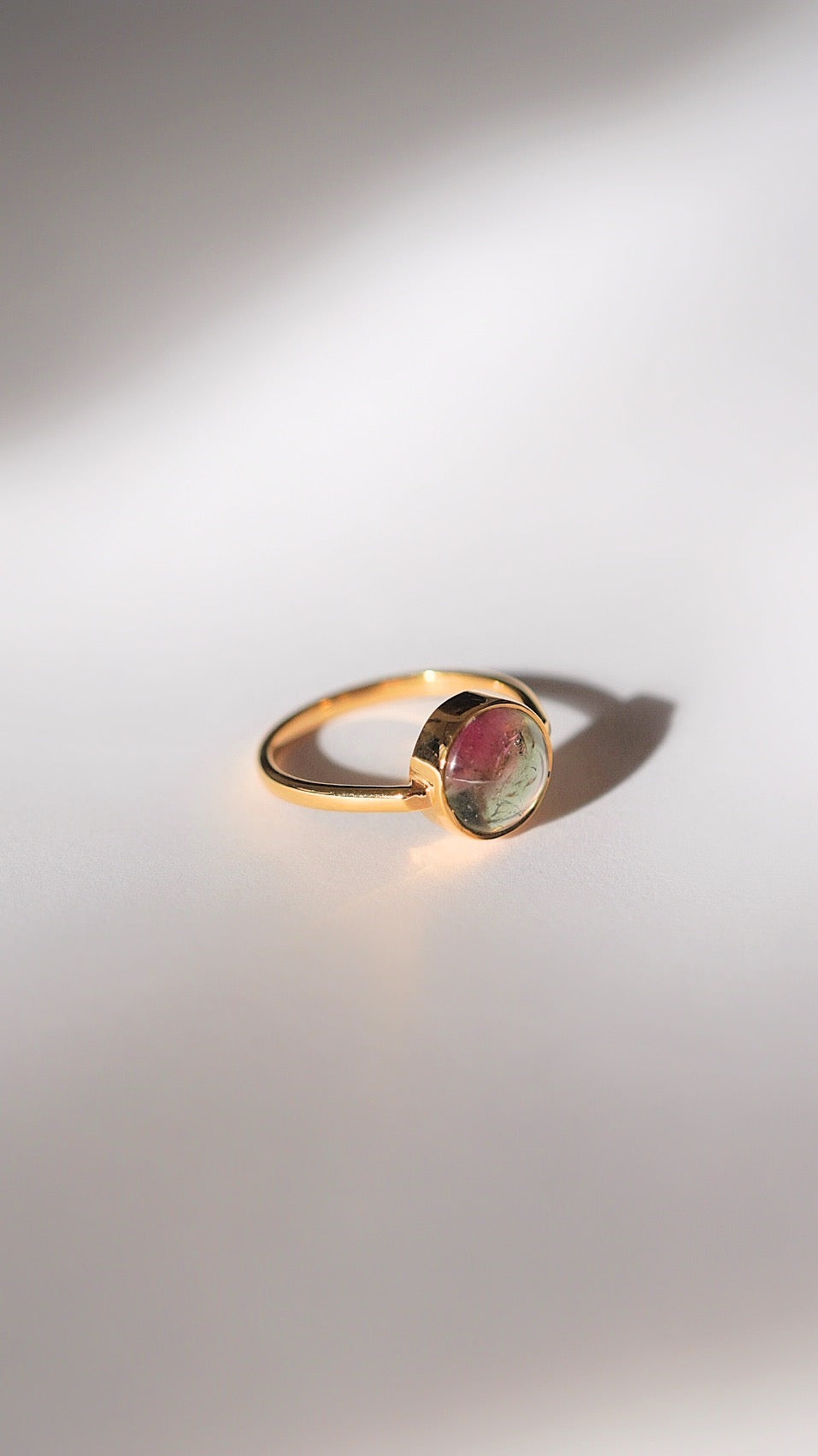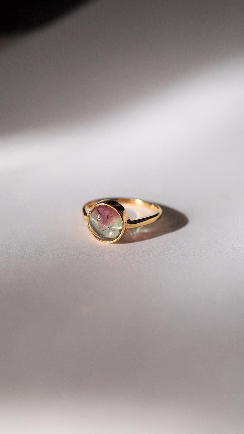 ピンクとグリーンのバイカラーのトルマリンがとても贅沢で引き込まれるような美しさのリングです。