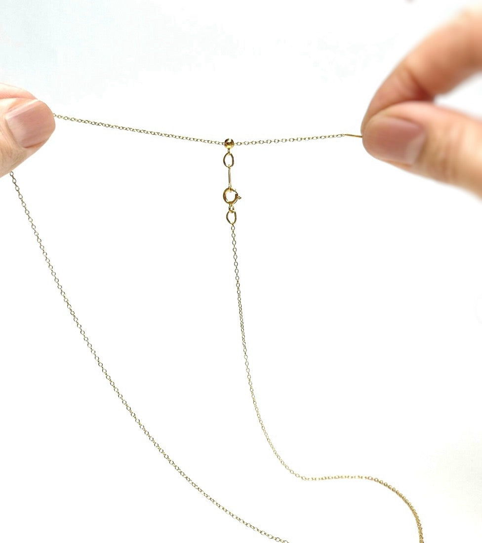 長さを自由に変更できる繊細なチェーンのネックレス。