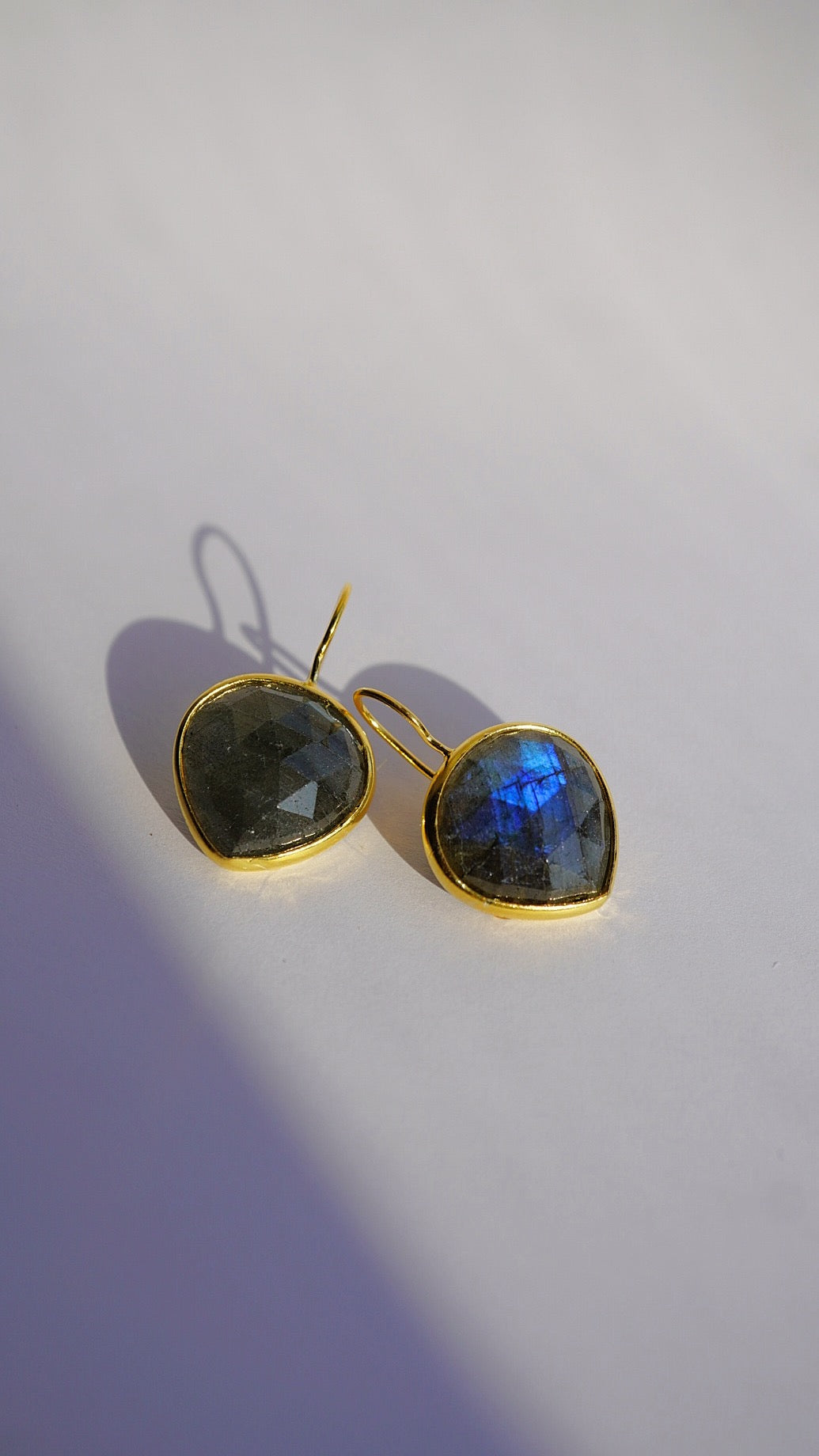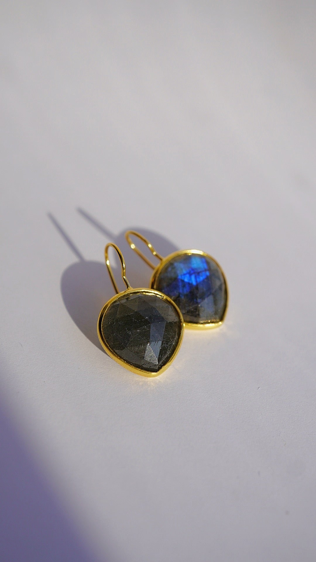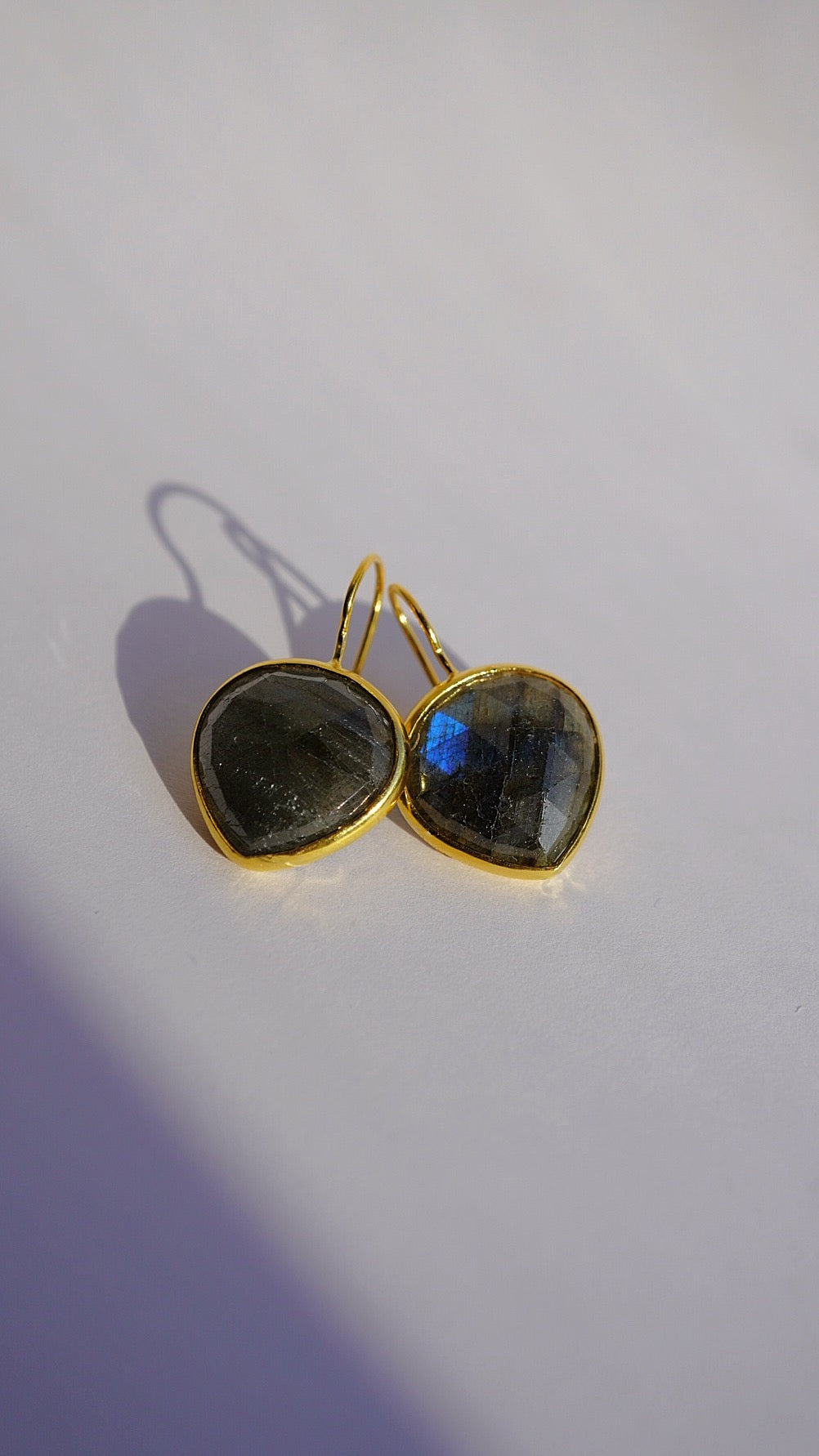 見る角度によって色彩を変え、オーロラのような輝きを持つ石、ラブラドライトのピアス。