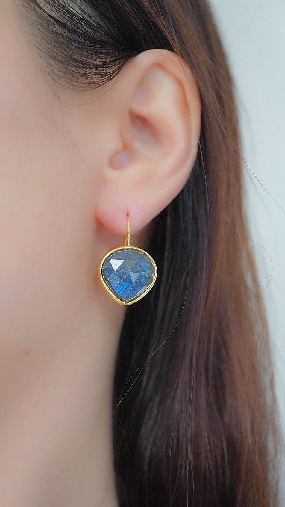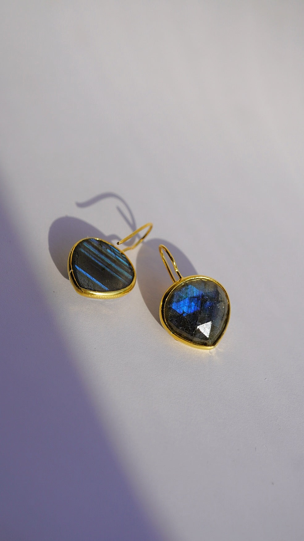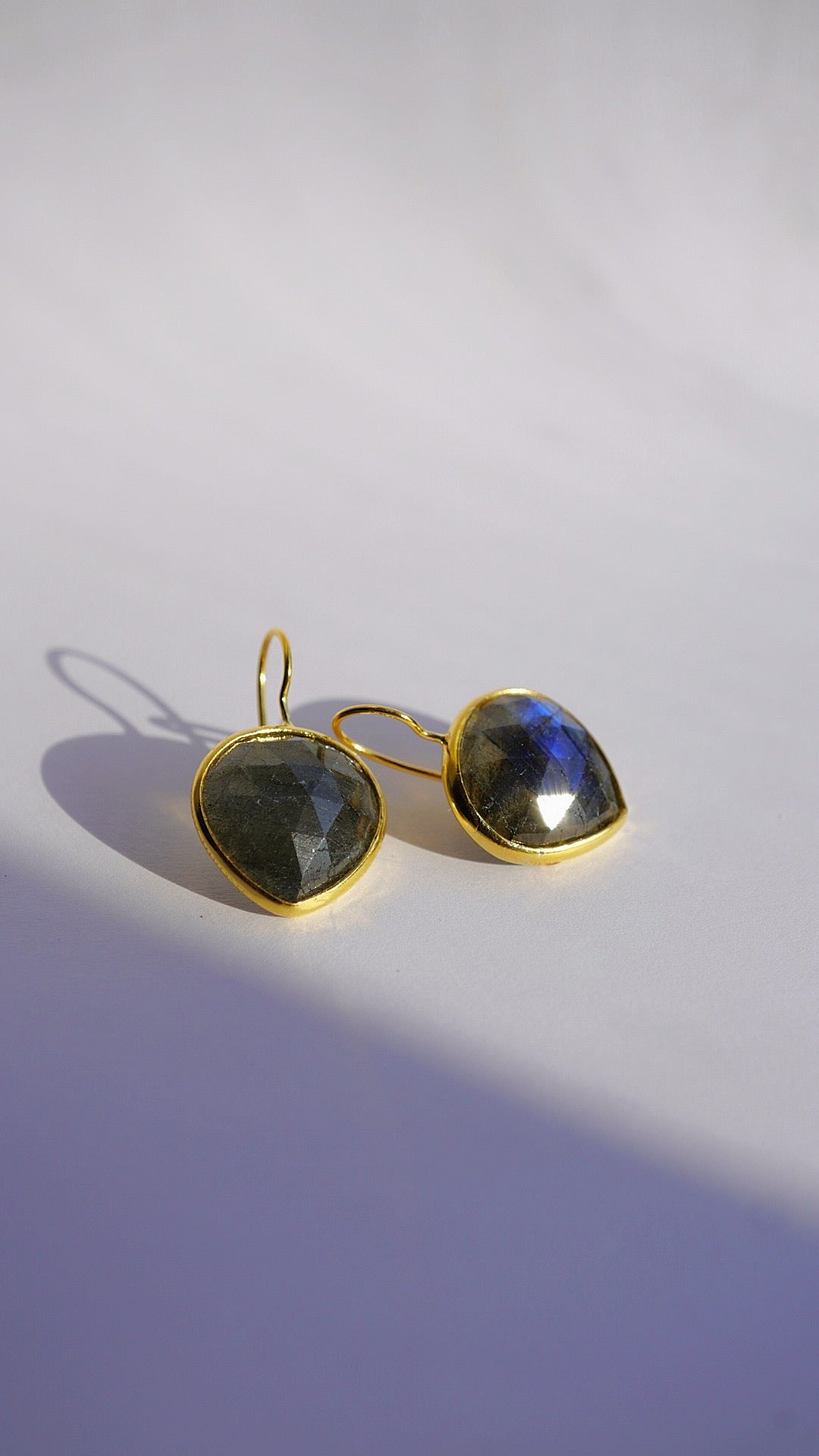 見る角度によって色彩を変え、オーロラのような輝きを持つ石、ラブラドライトのピアス。
